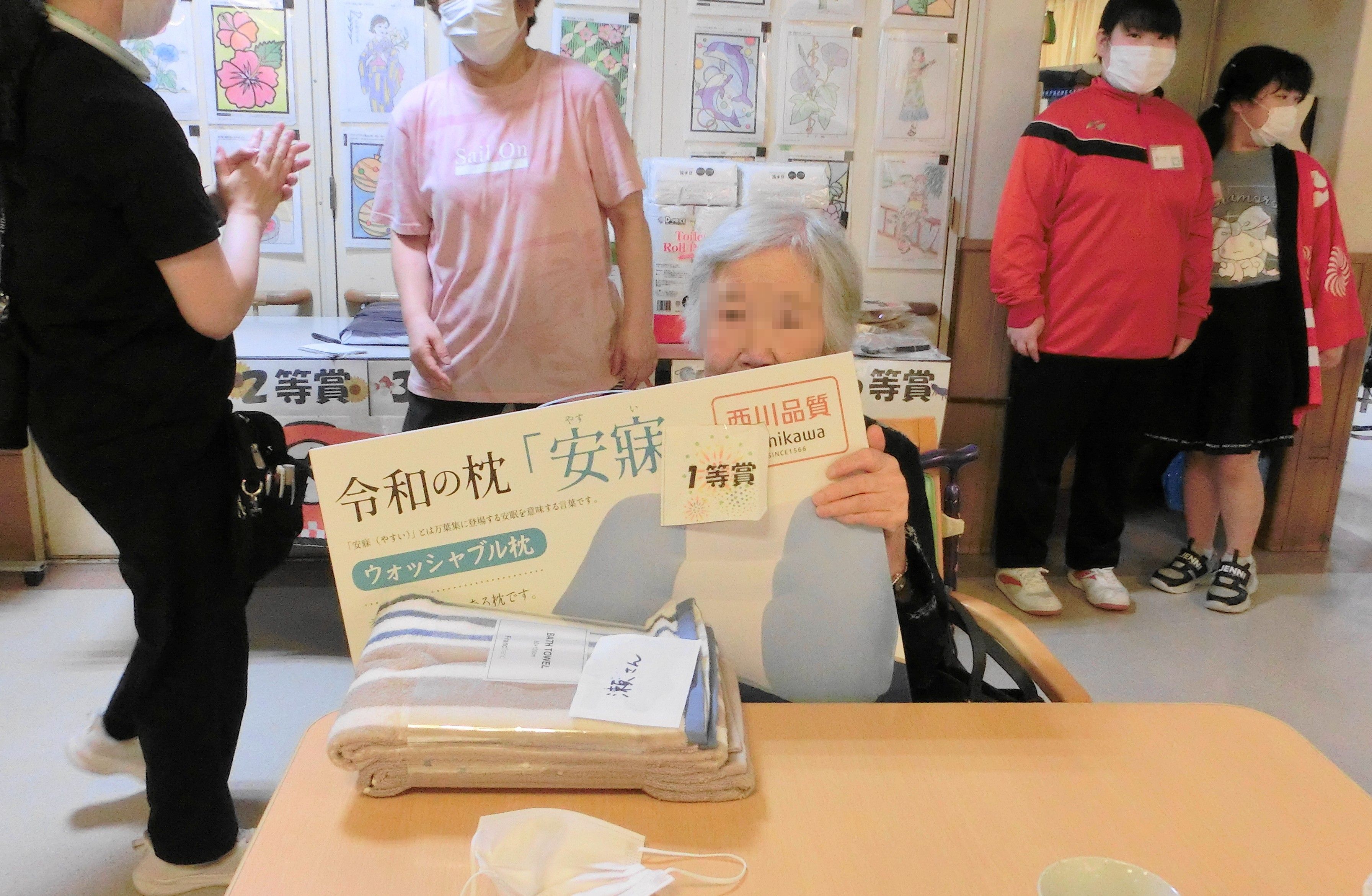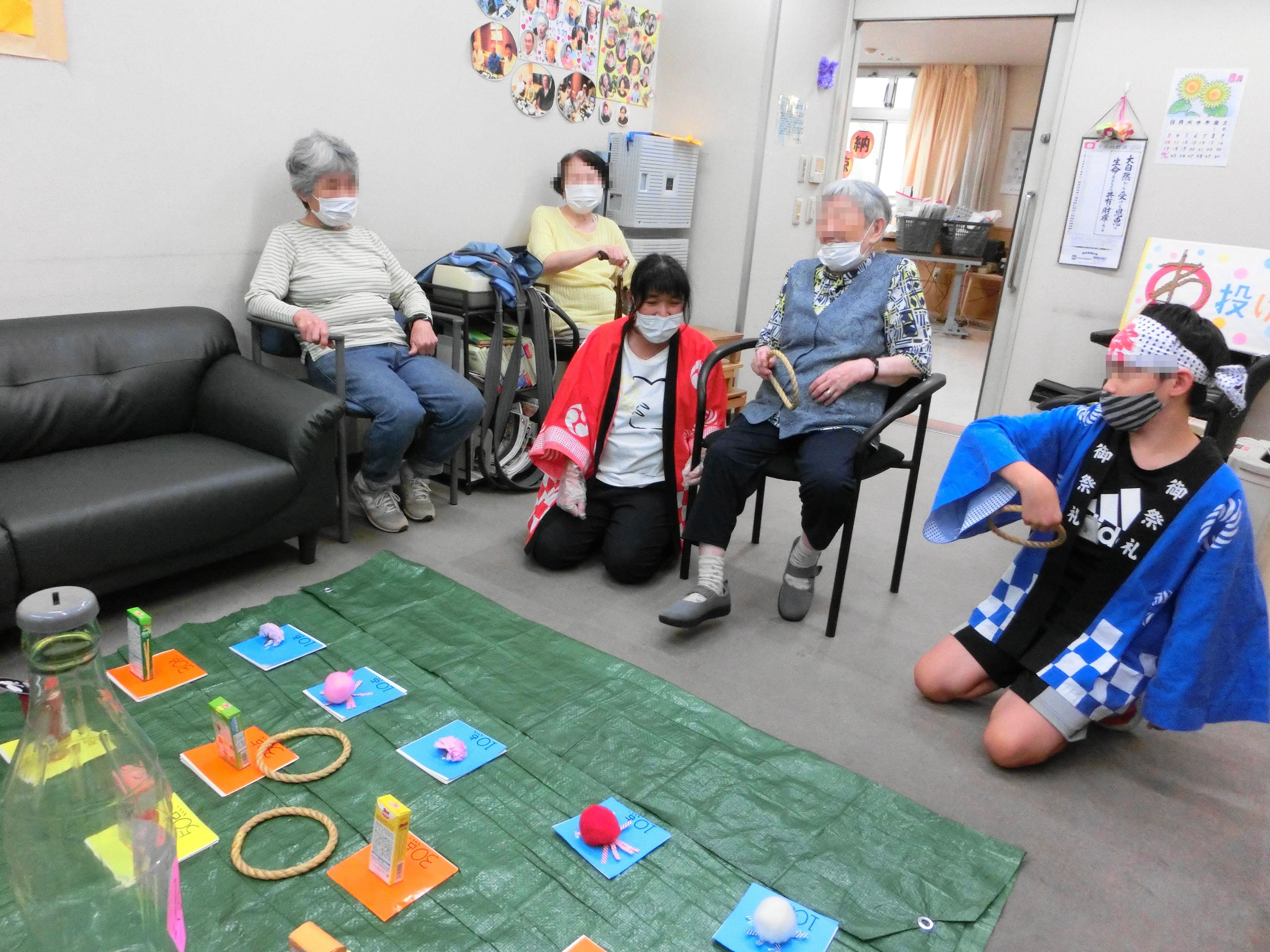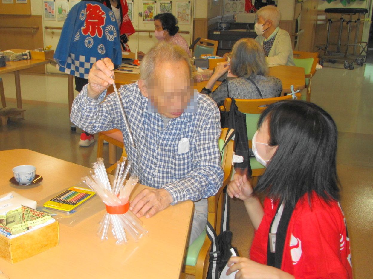 Date : 2025-09-17 納涼祭~デイサービス~ Category : Diary 8月27日・28日の2日間は納涼祭を開催しました。 今年は小学5年生から大学生まで幅広い方にボランティアに来ていただきました。 昔懐かしい縁日風に屋台にてたこ焼きを焼き、輪投げ、スマートボール、ストロー倒しゲーム等を楽しんで頂きました。 大抽選会ではこれまでのゲームで総合得点の高い方からクジを引いていただき、景品も皆様に喜んで頂けたようでした。 最後に炭坑節を皆様で一緒に踊っていただき、お祭り気分を味わって頂けたと思います。